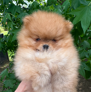 Nuestros Pomerania tienen el tamaño perfecto —unos 21 cm ± 3 cm y un peso acorde— y destacan por su postura, su expresión y sus proporciones armoniosas. Son pequeños, esponjosos y llenos de energía: ideales para quienes buscan un compañero activo y alegre, criado con amor para llegar a tu hogar feliz y sano.